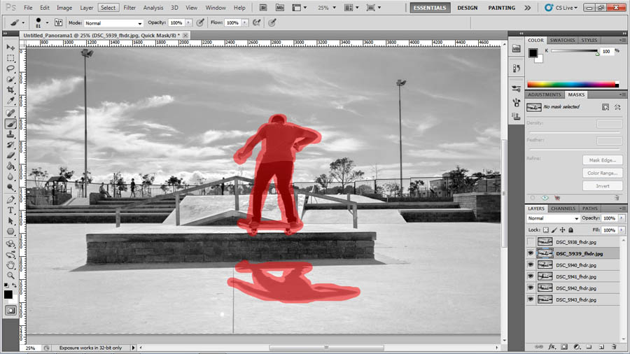 - Select the layer which represents the second action in your sequence and hide all other layers. You will now have to select your subject by brushing in mask mode.